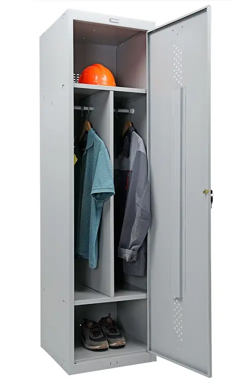 Практик ML 11-50D – это металлический шкаф, применяемый для ежедневного хранения верхней и сменной одежды и личных вещей в спортивных клубах, раздевалках на производстве и т.п. Шкафы линии Практик разрабатывались с учётом всех нюансов подобных помещений, чтобы предоставить максимум комфорта при их использовании; и при их весьма демократичной стоимости – их смело можно назвать наилучшим выбором среди аналогичных товаров на российском рынке.Локеры Практик ML отличаются высоким качеством, что подтверждается сертификатами ГОСТ 16371-2014, ГОСТ Р 56422-2015 и ГОСТ Р 56513-2015, а также декларацией о соответствии Техническому регламенту Таможенного союза ТР ТС 025/2012 «О безопасности мебельной продукции».