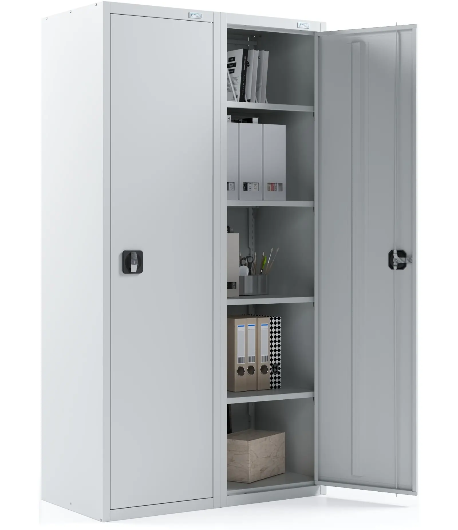 - Шкаф снабжён съёмными полками, расположение которых можно менять с малым шагом 25 мм – это позволяет разместить документы в шкафу, совместив визуальную доступность с удобством классификации, выбрав именно ту высоту уровней, которая соответствует индивидуальным запросам.