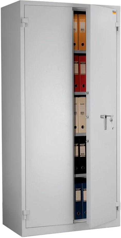 Огнестойкий сейфовый шкаф, рассчитанный на комфортное и безопасное хранение архивных документов. Благодаря высоким защитным свойствам, обеспечивающим сохранность содержимого при пожаре в течение минимум часа, а также крайнюю сложность повреждения, сейф данной категории является уникальным на отечественном рынке. Его устойчивость к огню и взлому гарантируется сертификатом по стандарту ГОСТ Р 50862-2005