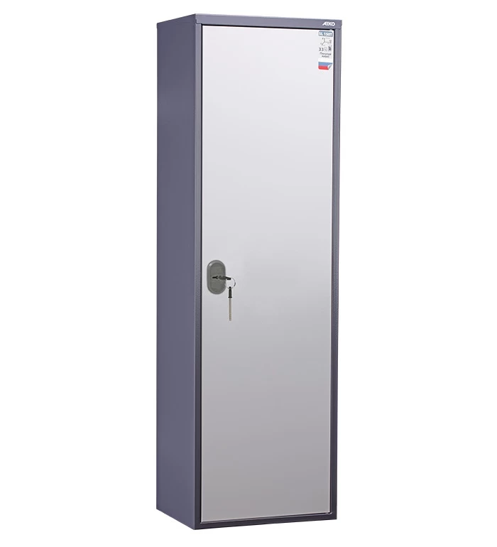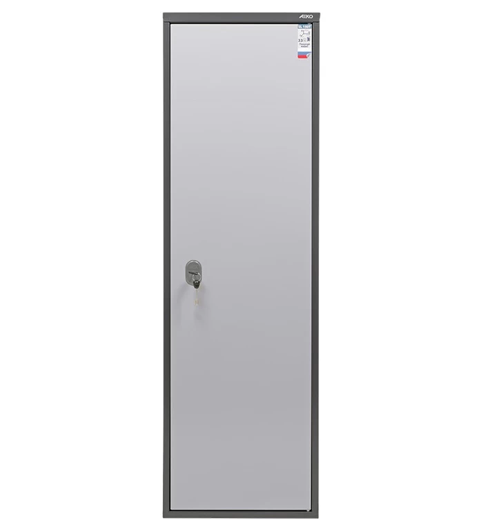 Шкаф Aiko SL-150Т – это прочное сварное изделие из стальных листов толщиной 1.2 мм. На дверь устанавливается трёхригельный ключевой замок «Практик» сувальдного типа.