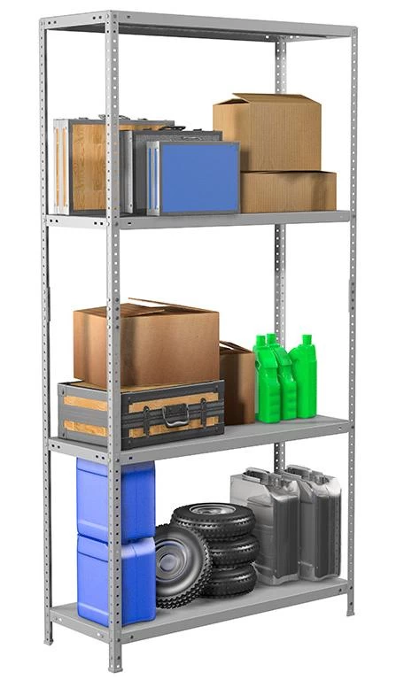 - Стеллажи окрашены порошковой краской серого цвета (RAL 7038).