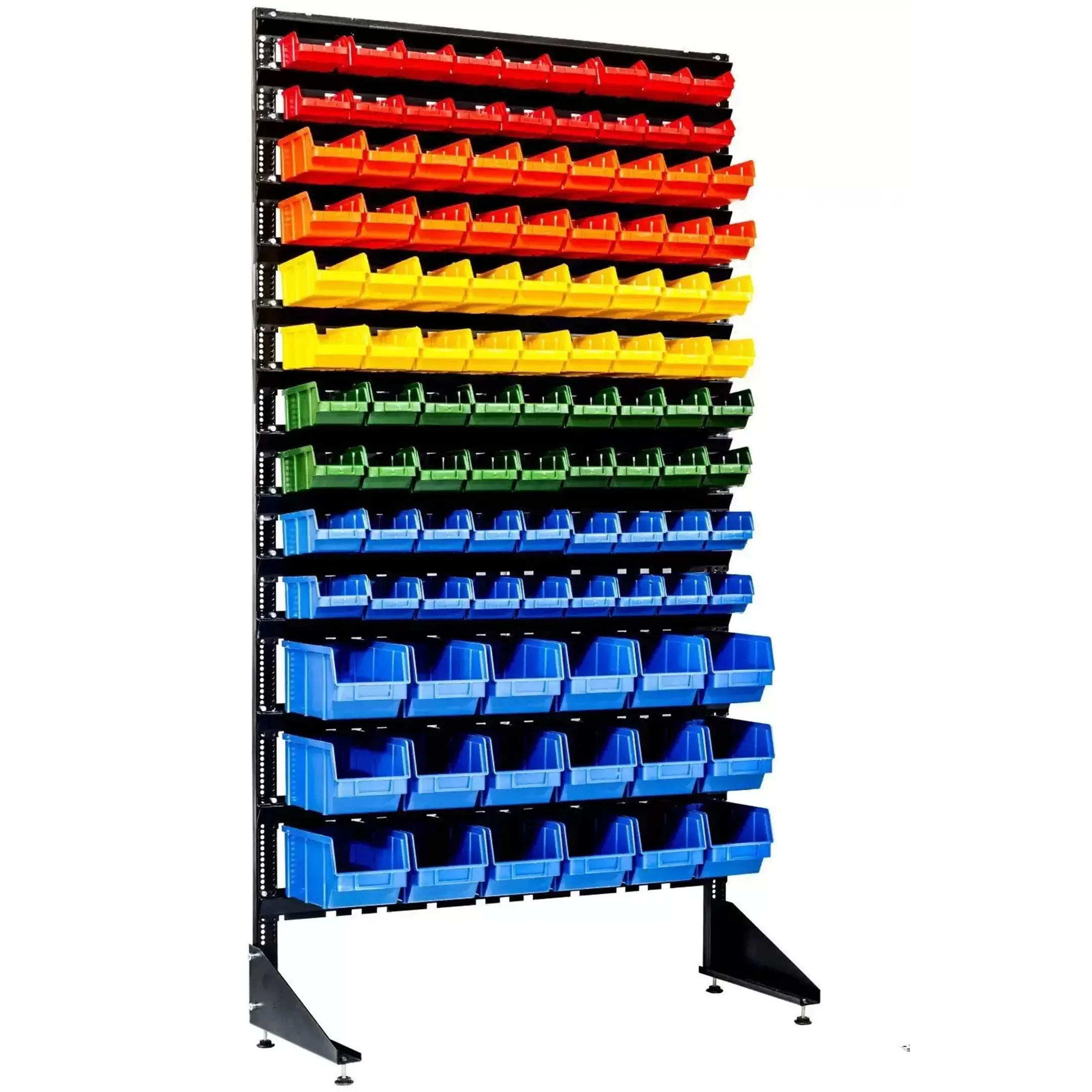 Стеллаж с пластиковыми ящиками 1801-2/8/3 Kombo используется для хранения в пластиковых боксах мелких предметов, деталей, инструментов, метизов и крепежа.Стеллаж спроектирован специально для удобного и упорядоченного размещения в мастерских и магазинах изделий, которые продаются россыпью или имеют небольшие размеры: радиодетали, сантехника, фитинги, подшипники, свёрла, заклёпки, зажимы, саморезы, гайки, болты и т.д.