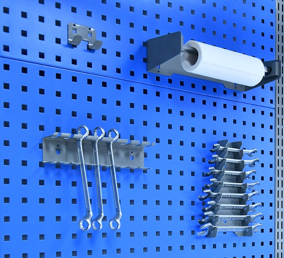 Изменились и перфорированные экраны верстаков Self: теперь все они представляют собою панели с квадратной перфорацией (12×12 мм, шаг 38 мм), что позволяет использовать для них навесные аксессуары других серий верстаков – например, Technic или Mechanic. Металлические панели отличаются прочностью и выдерживают нагрузку до 21 кг.