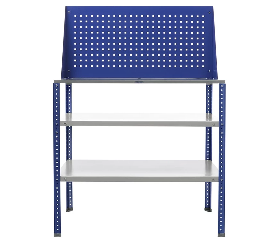 - Цветовое исполнение: полки и столешница – матово-серые, стойки и экран – синие (ультрамарин).
