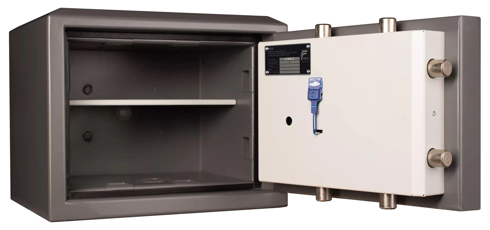 А вскрытие сейфа через замок, минуя этап пробивания толстой многослойной двери, исключается, поскольку модель OLLE AM1LE оборудована парой специальных замков: ключевым и электронным высокой секретности, механизм которых снабжён уникальной керамической защитой. Запирание замка активирует ригельную систему из шести массивных стальных цилиндров – ригелей: при попытке деактивировать замок они выдвигаются в пазы на корпусе, надёжно блокируя дверь.