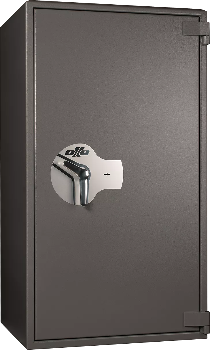А вскрытие сейфа через замок, минуя этап пробивания толстой многослойной двери, исключается, поскольку модель OLLE AM75L оборудована специальным ключевым замком высокой секретности, механизм которого снабжён уникальной керамической защитой. Запирание замка активирует ригельную систему из восьми массивных стальных цилиндров – ригелей: при попытке деактивировать замок они выдвигаются в пазы на корпусе, надёжно блокируя дверь.