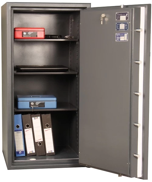 Универсальный сейф, предоставляющий комплексную защиту особо ценного имущества и крупных сумм денег на высоком уровне, исключающем как попытки взлома, так и повреждения содержимого при пожаре.