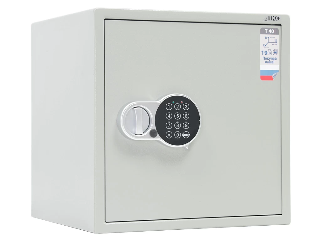Приобрели домашний сейф Aiko T-40 EL с электронным замком. Производится в России. Но технические характеристики очень даже нормальные. Цена бюджетная и соответствует качеству. Если нужен сейф с очень высоким уровнем надежности, то поищите другие модели. Нас устроила подробная консультация менеджеров профсейфа, оперативная доставка и сам сейф.