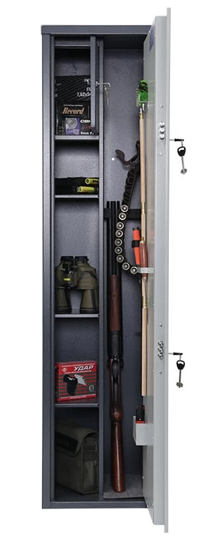 В верхней части корпуса располагается отделение для патронов размерами 301×178×190 мм, снабжённое собственным замком. Ниже располагается съёмный полочный блок и ложементы, которые плотно фиксируют стволы, создавая условия для наиболее удобного хранения. Сняв блок, вы получите место для хранения большего количества ружей.