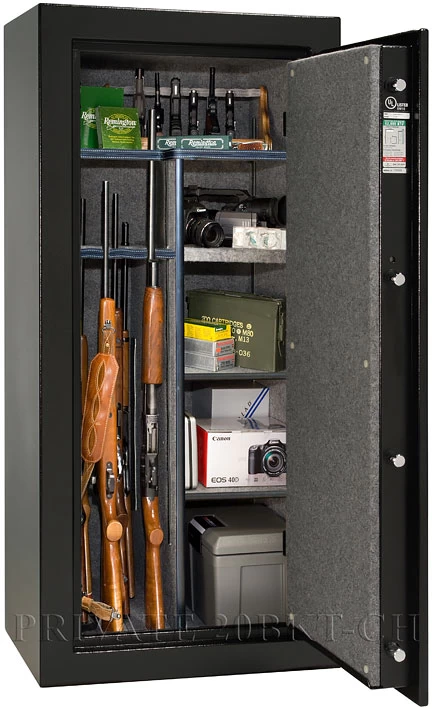 Отличительной особенностью модели Liberty Private 20BKT-CH является инновационный привод «SURETIGHT» с муфтой скольжения, которая с особой эффективностью предотвращает опасность высверливания или бокового выбивания ригелей. Запатентованная система Fail-Safe™ внутренних и внешних релокеров наглухо блокирует ригели и замок при попытке взломать сейф механическим или термическим способом.