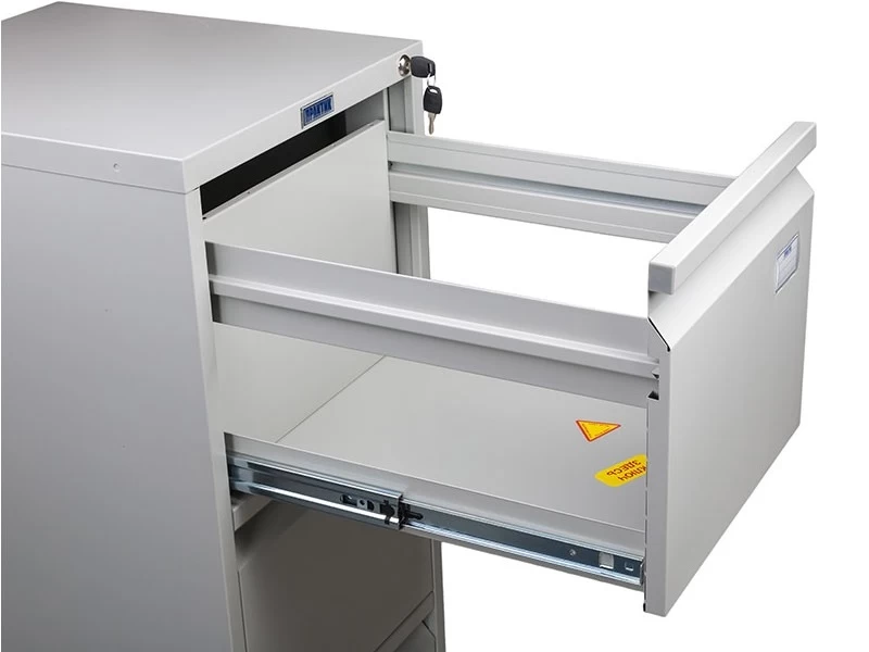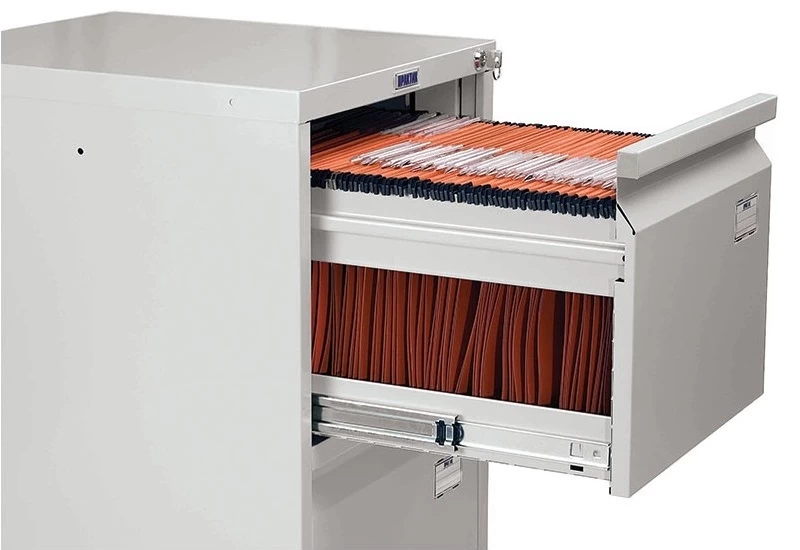 Картотечный шкаф Практик А-42 – это исключительно удобное и необходимое в любом современном офисе оборудование для эффективной работы с документами формата А4, рассчитанное на способ хранения в подвесных папках. О высоком качестве изделия свидетельствует сертификат ГОСТ 16371-2014, а также заключение Государственного санитарно-эпидемиологического надзора о соответствии санитарным нормам.Детали картотеки изготавливаются из качественных сортов стали высокой прочности с расчётом на длительное интенсивное использование. Это доказывают результаты промышленных испытаний: при полноценной загрузке, составляющей 20 кг на ящик, с успехом было проделано более 50 000 открываний. Ящики плавно и без усилий выдвигаются на всю глубину благодаря наличию телескопических направляющих. Для достижения наилучшей устойчивости изделие оснащено антиопрокидывающим устройством, не допускающим возможности выдвинуть два или более ящиков одновременно.