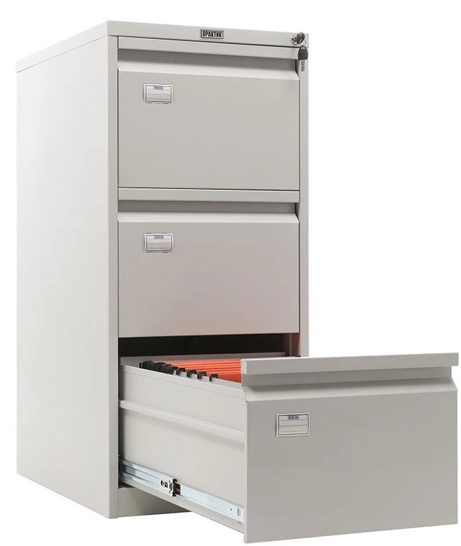 Картотечный шкаф Практик AFC-03 – это исключительно удобное и необходимое в любом современном офисе оборудование для эффективной работы с документами формата А4, рассчитанное на способ хранения в подвесных папках. О высоком качестве изделия свидетельствует сертификат ГОСТ 16371-2014, а также – декларация о соответствии Техническому регламенту Таможенного союза «О безопасности мебельной продукции».Детали картотеки изготавливаются из качественных сортов стали высокой прочности с расчётом на длительное интенсивное использование. Это доказывают результаты промышленных испытаний: при полноценной загрузке, составляющей 30 кг на ящик, с успехом было проделано более 50 000 открываний. Ящики плавно и без усилий выдвигаются на всю глубину благодаря наличию телескопических направляющих. Для достижения наилучшей устойчивости изделие оснащено антиопрокидывающим устройством, не допускающим возможности выдвинуть два или более ящиков одновременно.