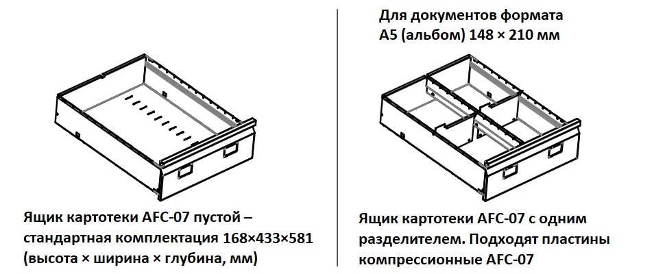 Картотека Практик AFC-07 состоит из семи ящиков, каждый из которых рассчитан на хранение 1000 карточек А5. Для их размещения требуются дополнительные элементы – компрессионные пластины (в комплект они не входят, их следует приобретать отдельно). Запираются все ящики одновременно посредством центрального ключевого замка ПРАКТИК, допускающего две тысячи комбинаций, среди достоинств которого следует отметить возможность смены цилиндра и прилагающийся мастер-ключ.