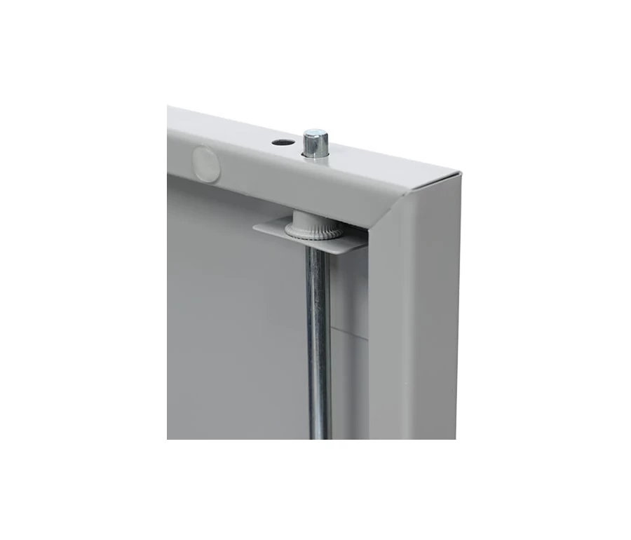 Среди достоинств шкафа стоит упомянуть пластиковые втулки, благодаря которым двери движутся легко и бесшумно, и надёжное запирание, обеспеченное ригелями из оцинкованной стали диаметром 6 мм.