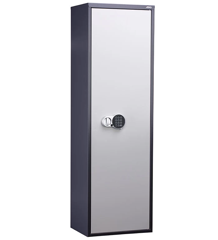 Шкаф Aiko SL-150Т EL – это прочное сварное изделие из стальных листов толщиной 1.2 мм. На дверь устанавливается электронный замок PLS-1 с возможностью аварийного открывания, для чего прилагается мастер-ключ. Для питания требуется четыре батарейки 1.5 В; имеется индикатор, уведомляющий о потере напряжения. В случае разрядки батарей код не меняется.