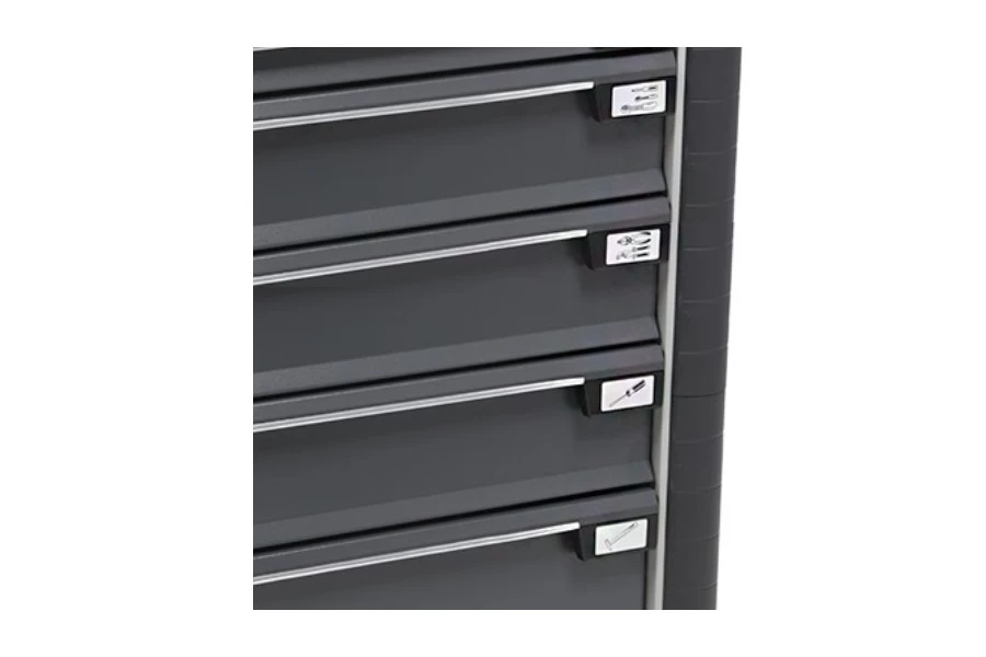 - Ящики снабжены держателями для бирок, где нарисованы пиктограммы инструментов, – это новшество позволяет создать указатели на содержимое ящиков, тем самым ускоряя трудовой процесс и организуя рабочее место в соответствии с концепцией системы 5S бережливого производства.
