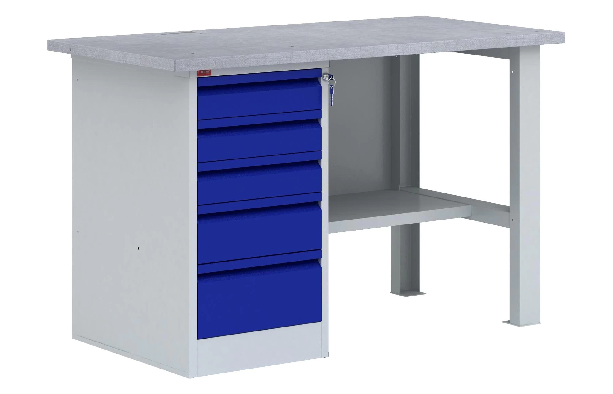 — дверца тумбы, лицевые панели ящиков и перфорированный экран – синие - При желании вы можете заказать к верстаку ВП-3/1.2 перфорированный экран Э-1.2 (высота 50 см), что соответственно изменит стоимость верстака.
