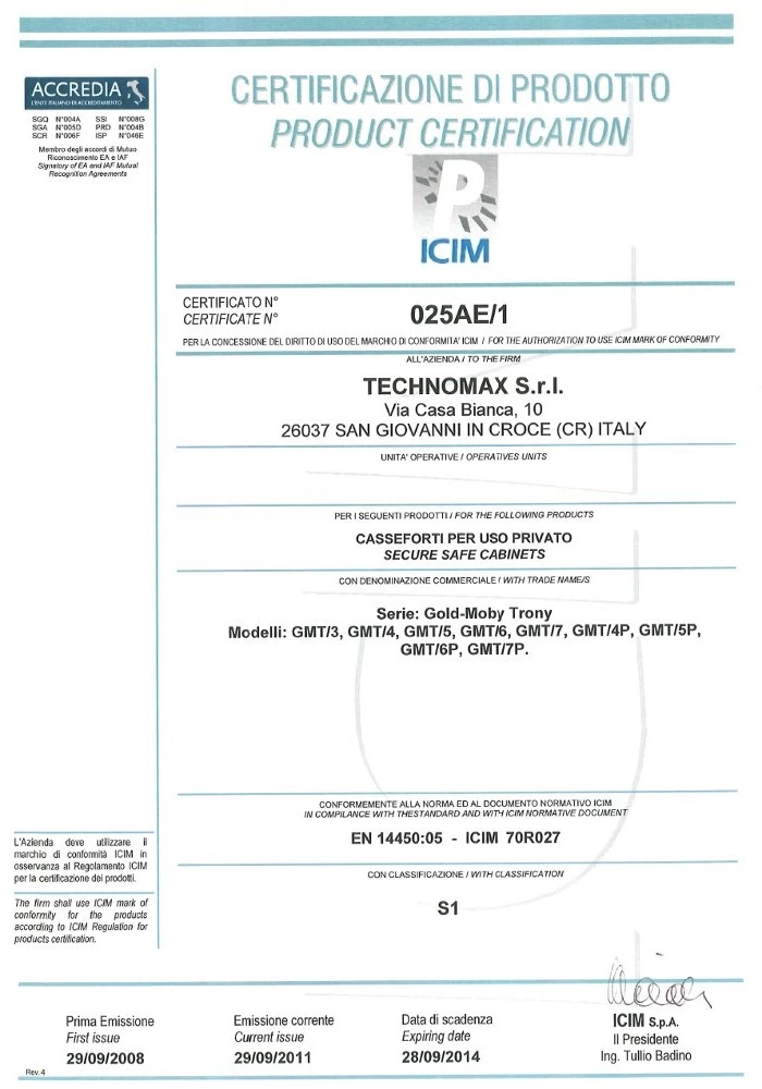 Взломостойкий итальянский сейф высокого качества, гарантирующий безопасное содержание денег, важных документов и ценной собственности. Первый класс устойчивости к взлому подтверждается европейским стандартом (EN 14450) и российским (ГОСТ). Сейф прекрасно подходит и для офиса, и для частной квартиры; возможно использование в качестве гостиничного сейфа. Допускается установка сейфа внутри шкафа.