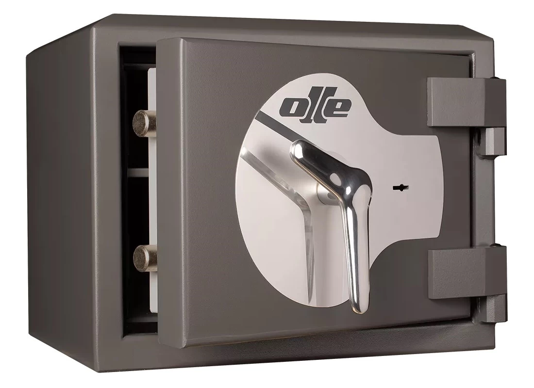 А вскрытие сейфа через замок, минуя этап пробивания толстой многослойной двери, исключается, поскольку модель OLLE AM1L оборудована специальным ключевым замком высокой секретности, механизм которого снабжён уникальной керамической защитой. Запирание замка активирует ригельную систему из шести массивных стальных цилиндров – ригелей: при попытке деактивировать замок они выдвигаются в пазы на корпусе, надёжно блокируя дверь.