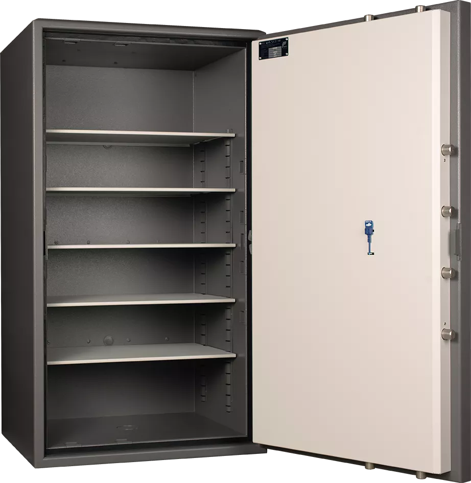 Дверь сейфа подвешена на мощных внешних петлях и распахивается на угол 180°, предоставляя владельцу полный обзор содержимого.
