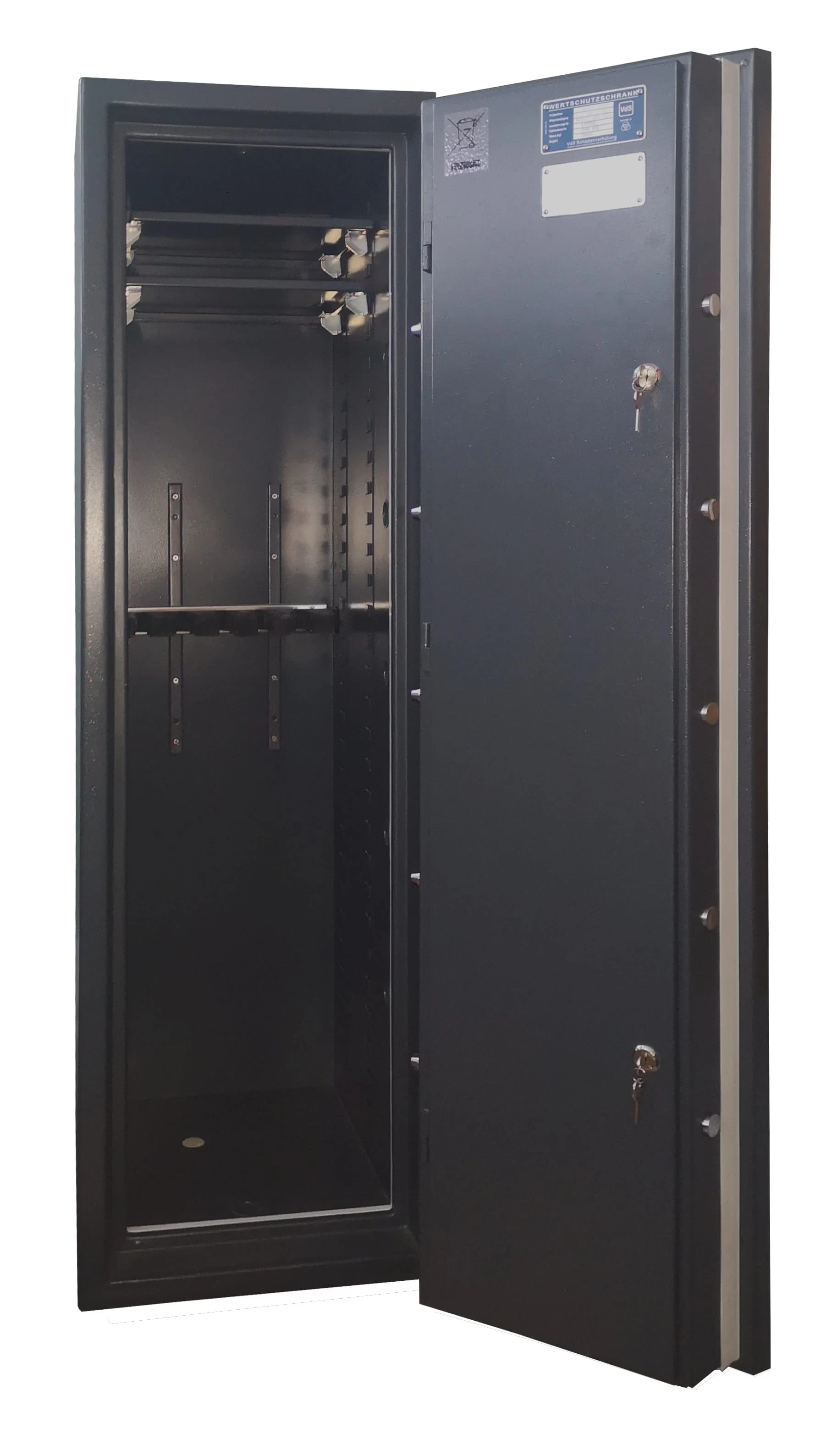 Универсальный оружейный сейф, предоставляющий комплексную защиту особо ценного имущества и крупных сумм денег на высоком уровне, исключающем как попытки взлома, так и повреждения содержимого при пожаре.