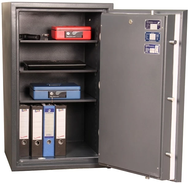 Универсальный сейф, предоставляющий комплексную защиту особо ценного имущества и крупных сумм денег на высоком уровне, исключающем как попытки взлома, так и повреждения содержимого при пожаре.