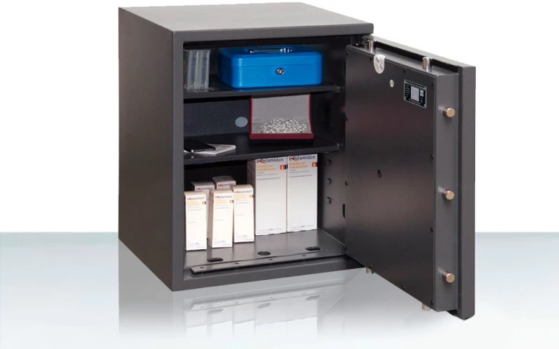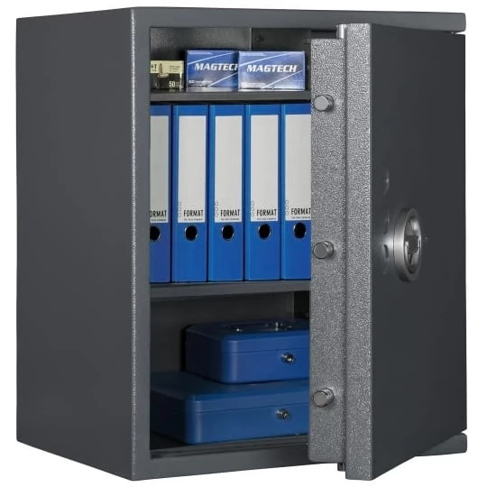 Данная модель отличается прочными многослойными корпусом и дверью, состоящими из нескольких листов стали и специального сложносоставного наполнителя, который многократно увеличивает способность сейфа противостоять вскрытию.