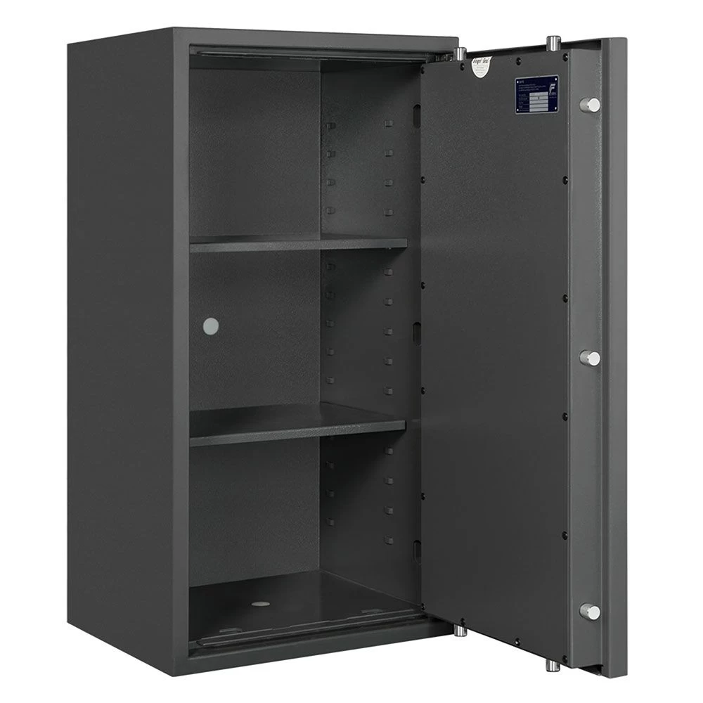 Данная модель отличается прочными многослойными корпусом и дверью, состоящими из нескольких листов стали и специального сложносоставного наполнителя, который многократно увеличивает способность сейфа противостоять вскрытию.