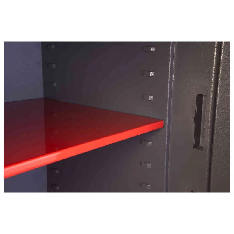 Внутри расположена съёмная полочка, которую можно передвигать по высоте, максимально удобным образом организуя полезное пространство сейфа.