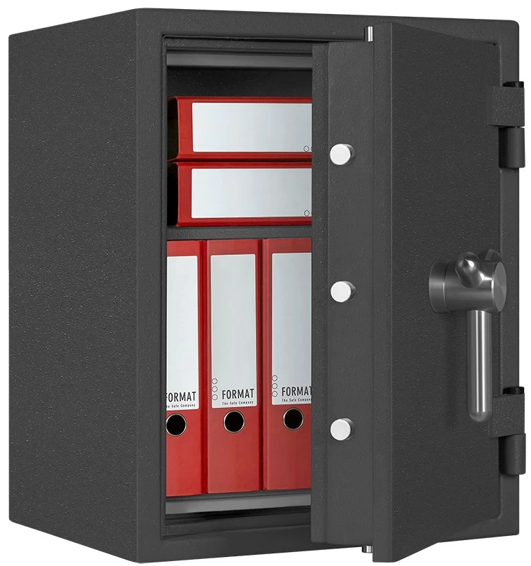 Format Paper Star Pro 1 EL – универсальный сейф превосходного качества, предназначенный для защиты крупных сумм денег, ценной собственности и документов в любых экстремальных ситуациях: он успешно сбережёт вашу собственность и от покушения взломщиков, и от порчи в случае пожара. По итогам ряда тестов, проведённых в лабораториях Format, модель сертифицирована: