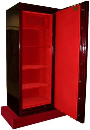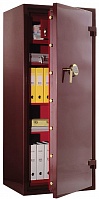 Изнутри сейф отделан флокированным бархатом, что придаёт изделию элитарный вид и способствует комфортному хранению. В комплекте имеются три съёмные полки с возможностью перемещения по высоте, а кроме того, трейзер высотой 200 мм – кассовое отделение с индивидуальным замком.