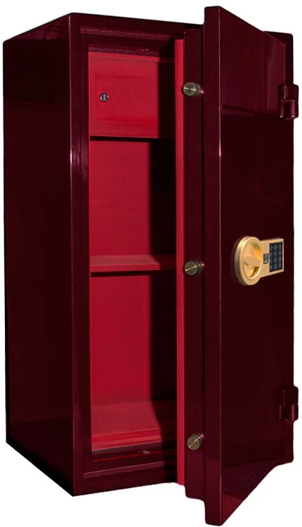 Дизайн поверхности – эффектное лаковое покрытие цвета спелой вишни, предохраняющее от коррозии и царапин. Также возможен выбор цвета по вашему выбору. Изнутри сейф отделан тёмно-красным бархатом, создавая вашим ценностям исключительно комфортные условия хранения.