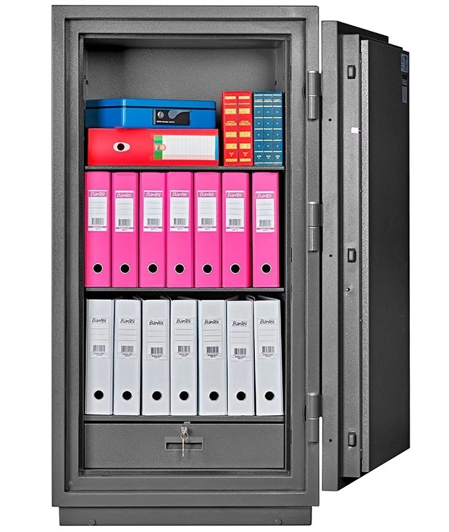 Огнестойкий сейф современного уровня, приобретение которого обеспечит вам уверенность, что помещённая туда ценная собственность и важные документы останутся в сохранности в экстремальной ситуации пожара: сейф FRS-140.T KL гарантирует абсолютную защиту содержимого от огня в течение как минимум часа. Удачное сочетание надёжности и вполне демократичной цены – фактор, позволяющий назвать модель FRS-140.T KL одним из наилучших вариантов на фоне прочих сейфов данной категории, представленных на российском рынке.По итогам лабораторных испытаний по ГОСТ Р 57384-2017 сейфу присвоен высокий класс 60Б по огнестойкости, что подтверждается как европейским, так и отечественным сертификатами качества.