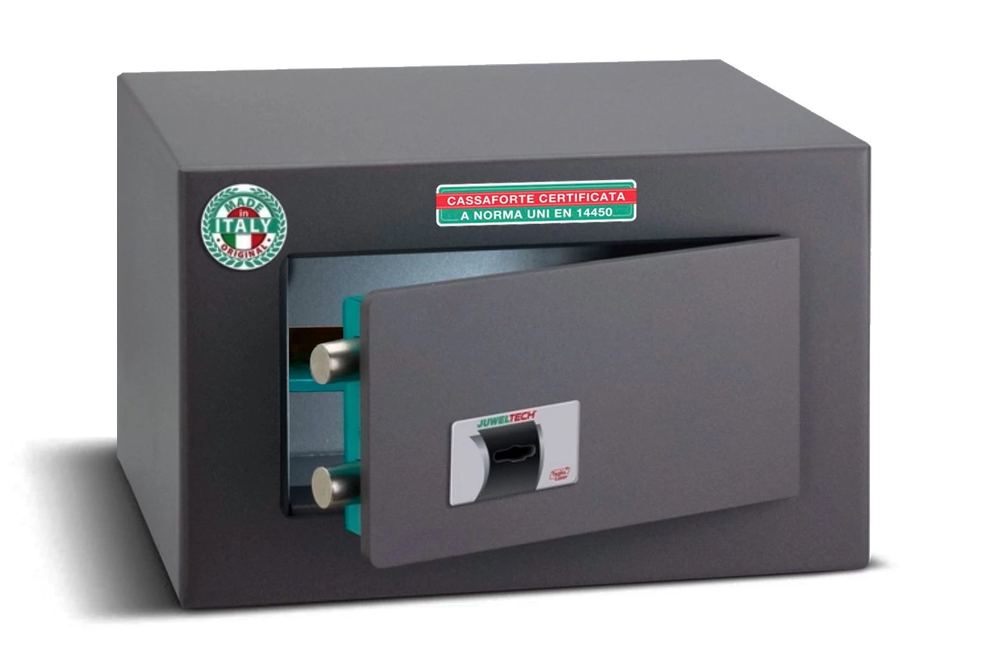 Cейф JUWELtech JMK/3 изготовлен в Италии. Он может использоваться в качестве мебельного сейфа для хранения денег, украшений и других ценностей. Данная модель сертифицирована по европейской системе сертификации EN 14450, уровень её защиты соответствует классу 1 по ГОСТ.