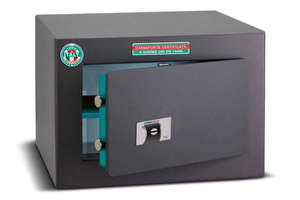 Cейф JUWELtech JMK/4 изготовлен в Италии. Он может использоваться в качестве мебельного сейфа для хранения денег, украшений и других ценностей. Данная модель сертифицирована по европейской системе сертификации EN 14450, уровень её защиты соответствует классу 1 по ГОСТ.