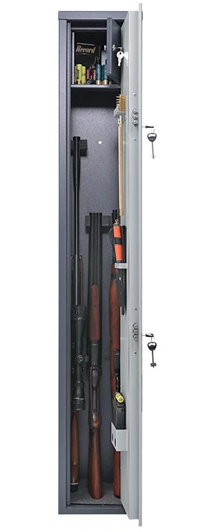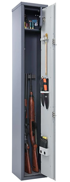 В верхней части сейфа устроено отделение для патронов размерами 199/147×246×173/90 мм (усечённое), снабжённое собственным замком. Под ним располагаются три ложемента, которые аккуратно фиксируют ствол, создавая условия для исключительно удобного хранения. Патронное отделение устроено так, чтобы можно было разместить ружья по всей длине сейфа.