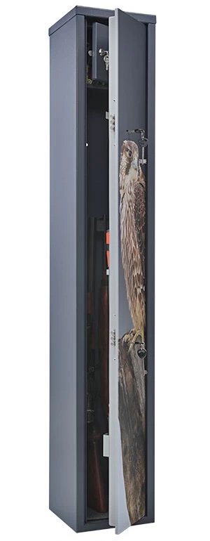 Принадлежит к категории охотничьих сейфов высокого качества, отличающихся вполне демократичной ценой. Такой сейф следует приобретать, если вас интересует комфортное размещение длинноствольного оружия с длиной ствола не более 1.4 метра. Надёжность сейфовой линии Беркут подтверждена сертификатом; также изделие по всем характеристикам отвечает требованиям МВД РФ к хранению огнестрельного оружия и боеприпасов. Сейф Беркут-3 Print прекрасно подойдёт для использования как в частном доме, так и в служебном помещении.