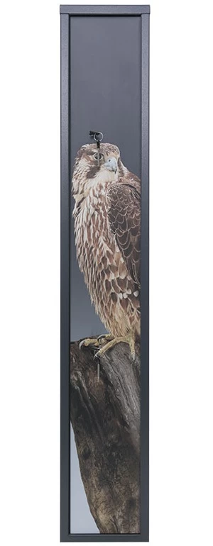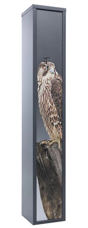 Поверхность сейфа Беркут-3 Print обработана защитным порошковым составом нейтрального оттенка графита с эффектом молотковой эмали. На дверь методом прямой фотопечати на УФ принтере нанесён рисунок. Под заказ возможно напечатать на двери изображение по вашему выбору.