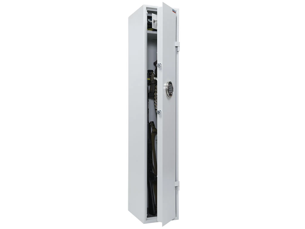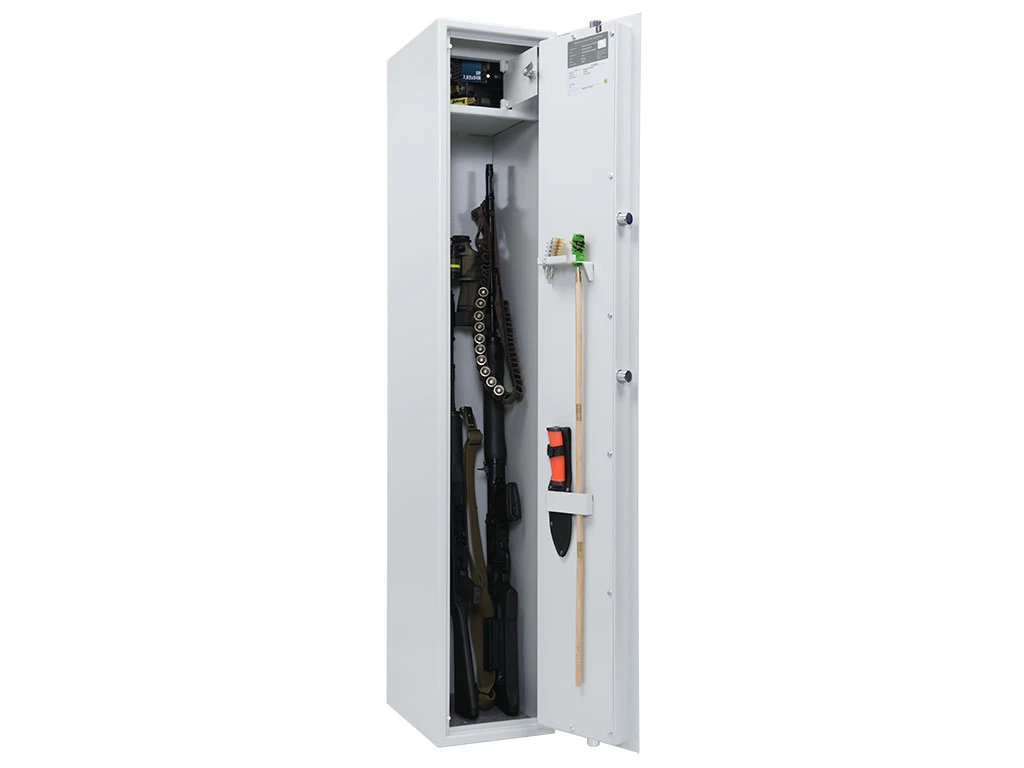Принадлежит к категории охотничьих сейфов высокого качества и рассчитан на комфортное содержание до 5 стволов. Сейф располагает сертификатами на взломостойкость и всецело отвечает требованиям МВД РФ к хранению огнестрельного оружия и боеприпасов. Отнесён к классу S1, что соответствует классу оружейных сейфов А1 по нормативам ГОСТ Р 56367-2015.