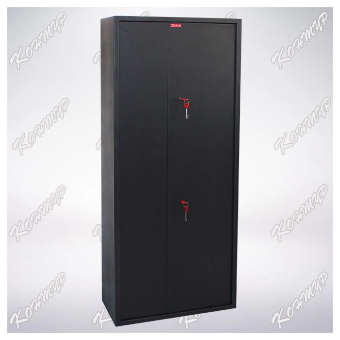 Корпус сделан из стальных листов толщиной в 1,5 миллиметра, дверь сделана из стальных листов толщиной в 2 миллиметра. Дверь на внутренних петлях надёжно запирается парой замков «ПРОСАМ» (пр-во Россия).