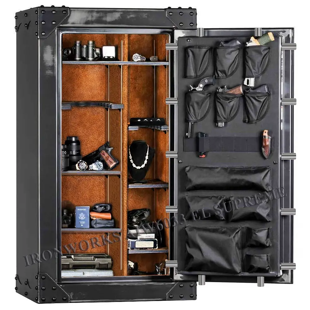 Сейф Rhino Ironworks AIW6033 EL Supreme, разработанный американской компанией, выполнен в стиле сейфов начала XIX века. Модель универсальна – помимо хранения оружия, может применяться и в качестве классического сейфа для ценностей. Обладает высокой сопротивляемостью огню, но также устойчив и к угрозе взлома.- Дизайн сейфов Rhino Ironworks® (запатентован в США) гармонично сочетается с современными интерьерами в стилях: лофт, индастриал, кантри, винтаж.