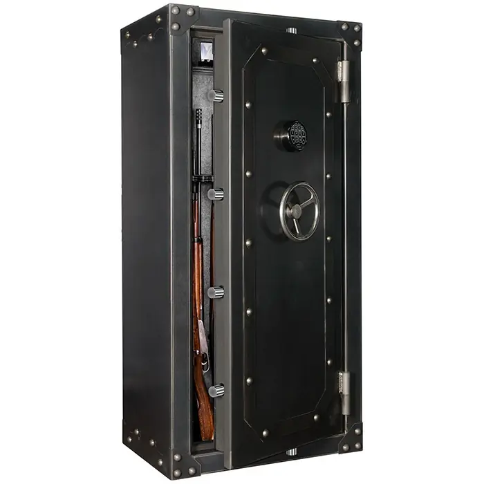 Rhino Metals KSB5928EX UN EL Kodiak – сейф премиум-класса категории огневзломостойких, произведённый компанией Rhino Safe (США). Модель универсальна – помимо хранения оружия, может применяться и в качестве классического сейфа для ценностей. Современные технологии удачно сочетаются с винтажной эстетикой: корпус выполнен в эффектном старинном дизайне.- Вместимость изделия позволяет разместить до 30 ружей, а также многочисленные аксессуары и боеприпасы, что подтверждено данными производителя.